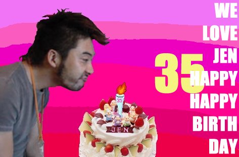ジェンの元画像を見て、ローソクの火を吹き消すジェンにしよう!と閃き