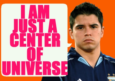 吹き出しの中の英文の意味は「我こそ世界の中心」という意味。